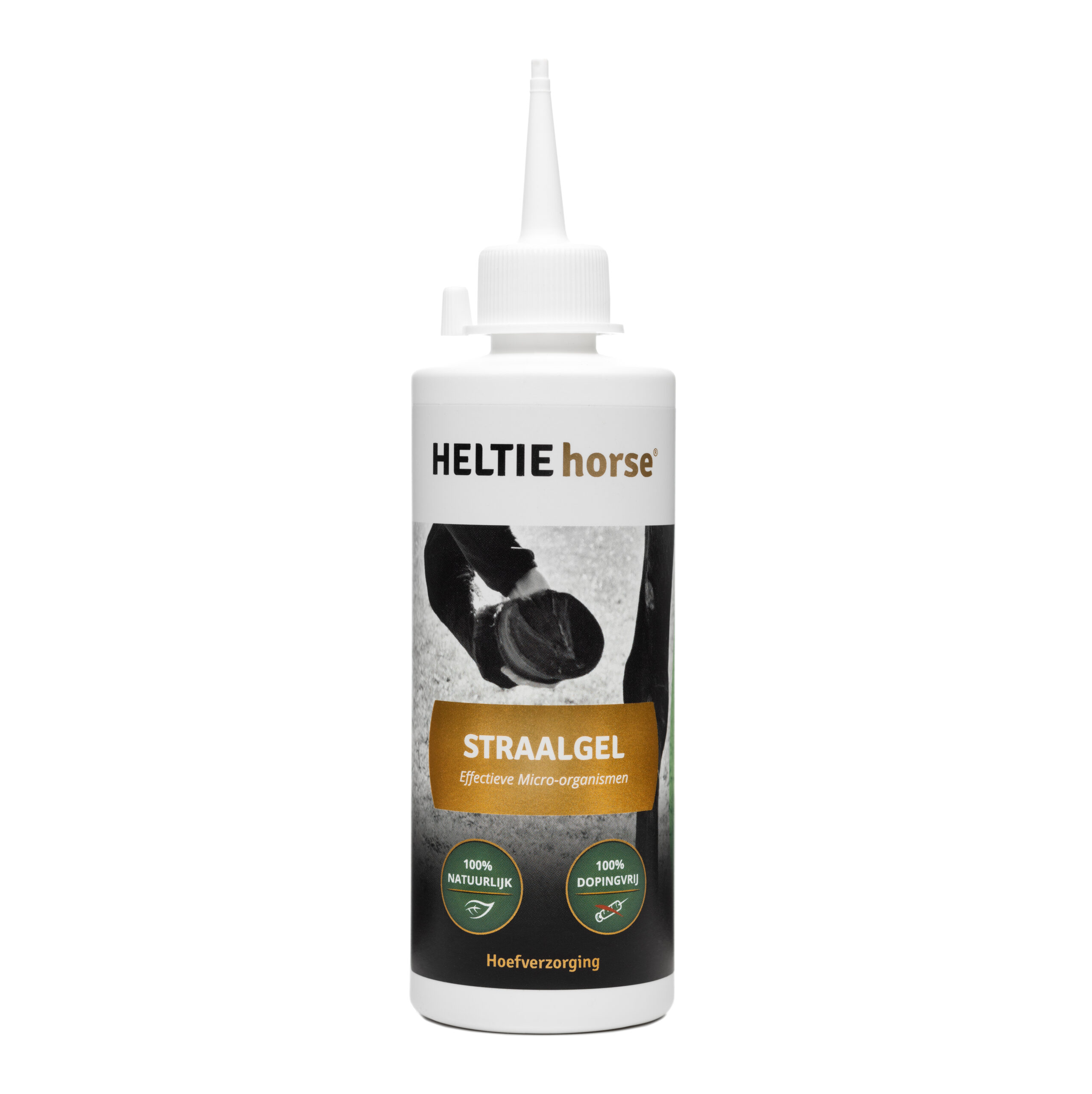 HELTIE horse® Straalgel kan worden ingezet bij paarden die last hebben van natte en/of onrustige stralen. Deze straalgel is samengesteld op basis van effectieve micro-organismen (EM), rietsuikermelasse* en water. Het doel van deze gel is om het zelf-herstellend vermogen van de straal te ondersteunen en bij te dragen aan een gezond evenwicht tussen gunstige en ongunstige bacteriën in de straal van de hoeven.