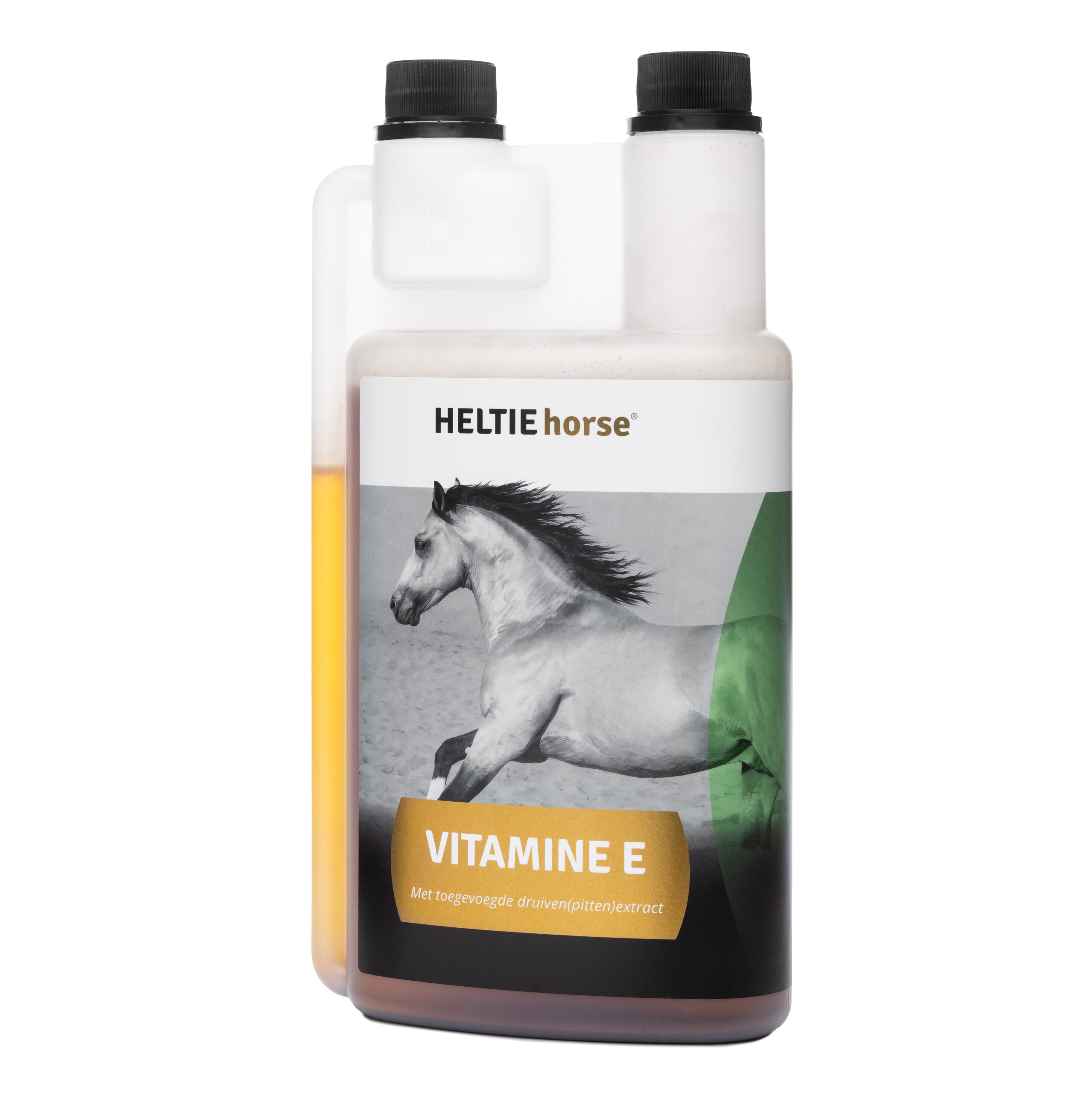 HELTIE Horse® Vitamine E is een voedingssupplement voor paarden op basis van tarwekiemolie, druivenextract en toegevoegde vitamine E (RRR-α-tocoferol).