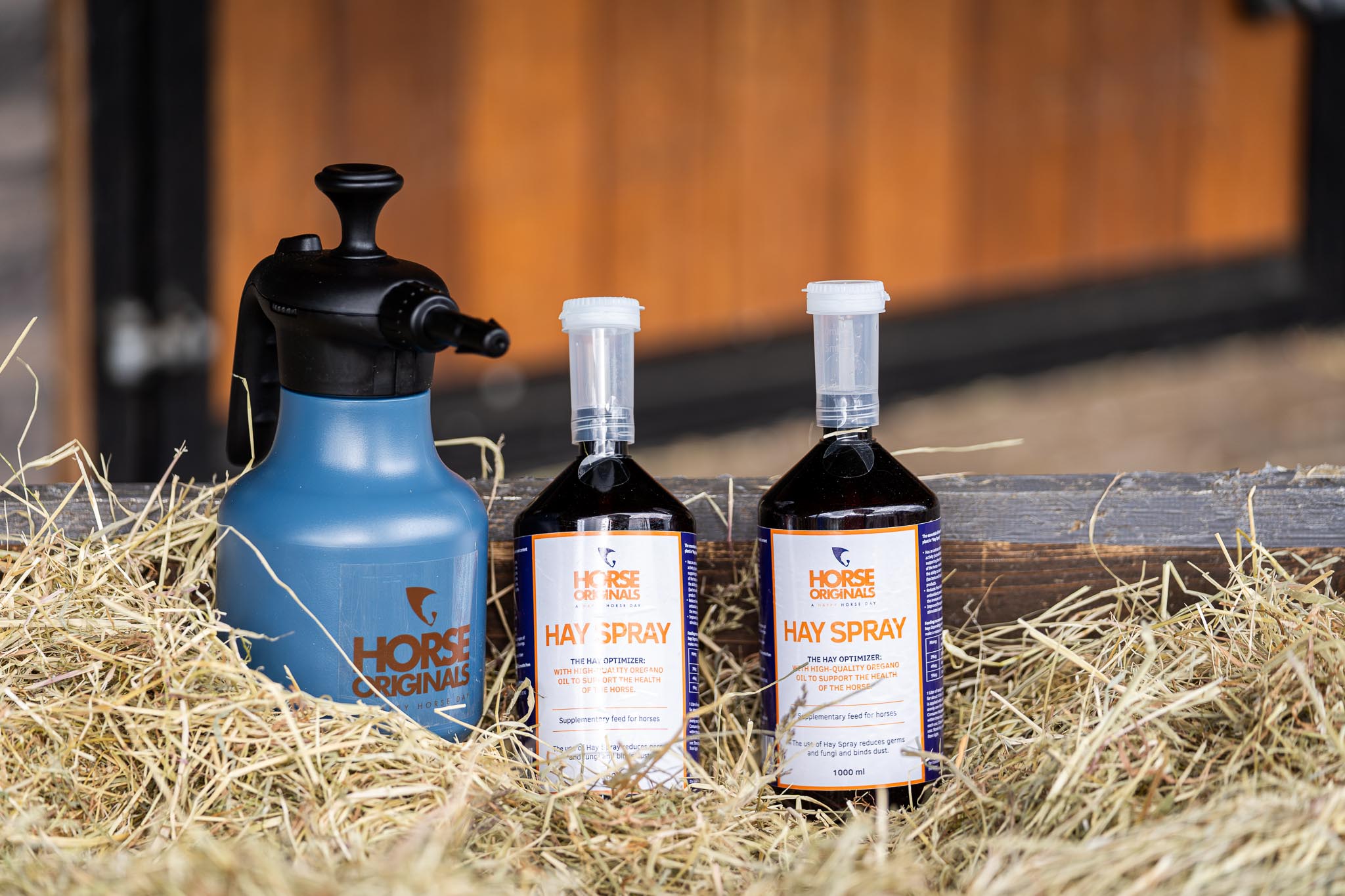 Meng 30 ml Hay Spray met 1 liter water in een plantenspuit of verstuiver. Pak de hoeveelheid hooi die je nodig hebt en neem een klein deel daarvan. Spuit de bereide Hay Spray gelijkmatig over het hooi. Herhaal deze stappen totdat al het hooi is behandeld. 1 liter van het bereide mengsel is voldoende voor 10 kg hooi. De bereide oplossing met Hay Spray kan direct of binnen drie dagen worden gebruikt. Het behandelde hooi kan meteen worden gevoerd of bewaard voor een latere voerbeurt.