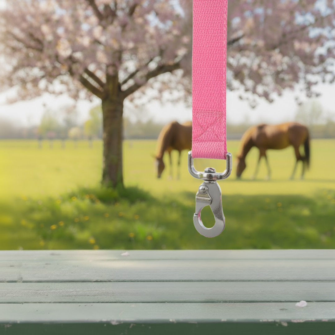 Speciaal voor de roze hooinetten hebben we ook roze ophang banden. Hiermee kan je handig een hooinet ophangen, alsook wateremmer.