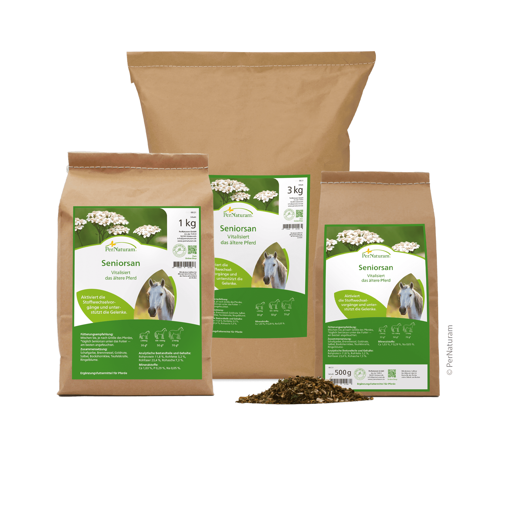 De SeniorSan is een kruidenmengsel die allround revitaliserend is voor oudere paarden. Het heeft een gunstige invloed op ouderdomsverschijnselen.